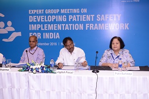 Patient safety is a serious global public health issue. There is now growing recognition amongst countries that patient safety is one of the core elements of quality health care, which, in turn, is a critical dimension of Universal Health Coverage. Many challenges of patient safety are attributed to overall health system weakness and are determined by broader public health policy and political and economic trends. Thus, improving patient safety requires system-wide approach and must be regarded as part of the overall health system strengthening efforts. To further step up the patient safety agenda in India, WHO Country Office for India and Ministry of Health & Family Welfare, Government of India jointly organised the first meeting of the expert group on Developing Patient Safety Implementation Framework. The meeting took place on 1-2 September 2016 in New Delhi.