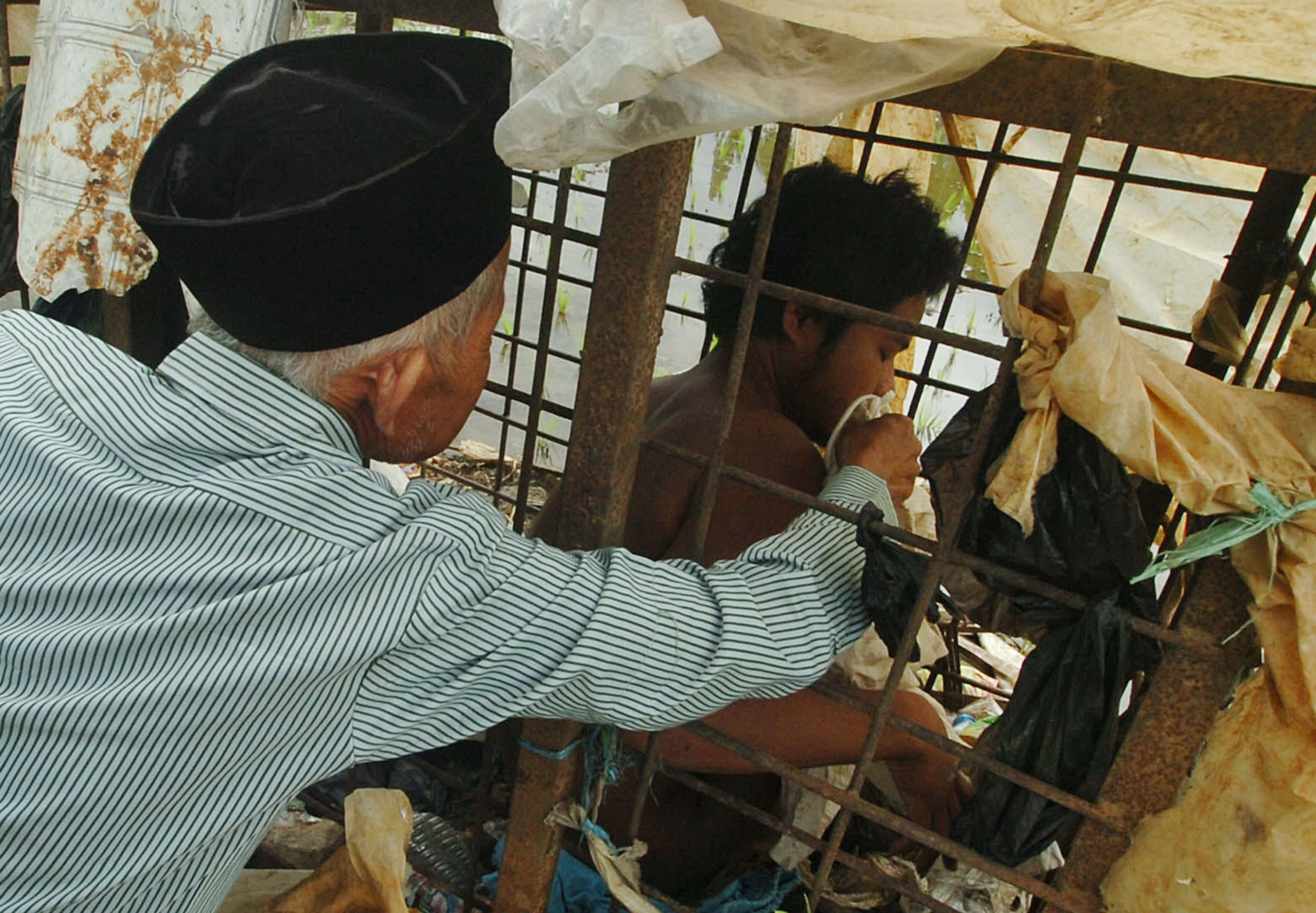 Caption: People in pasung eat, drink urinate and defecate in place. This young man has been caged since about 2009. Photo credit: ©Jefta Images/Barcroft Media/Barcroft Media via Getty Images.