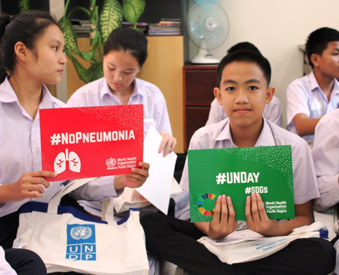 Every year, the UN agencies in Laos would mark the UN Day with the goal of raising awareness of the work they do in the country, and also in promoting the Sustainable Development Goals. Ten activity rooms were managed by UN staff to showcase their work and the students enjoyed an afternoon at the UN House.