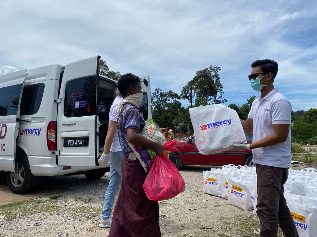 MERCY Malaysia staff distribute food to refugees Hulu Langat, Malaysia in 2019. Photo: MERCY Malaysia